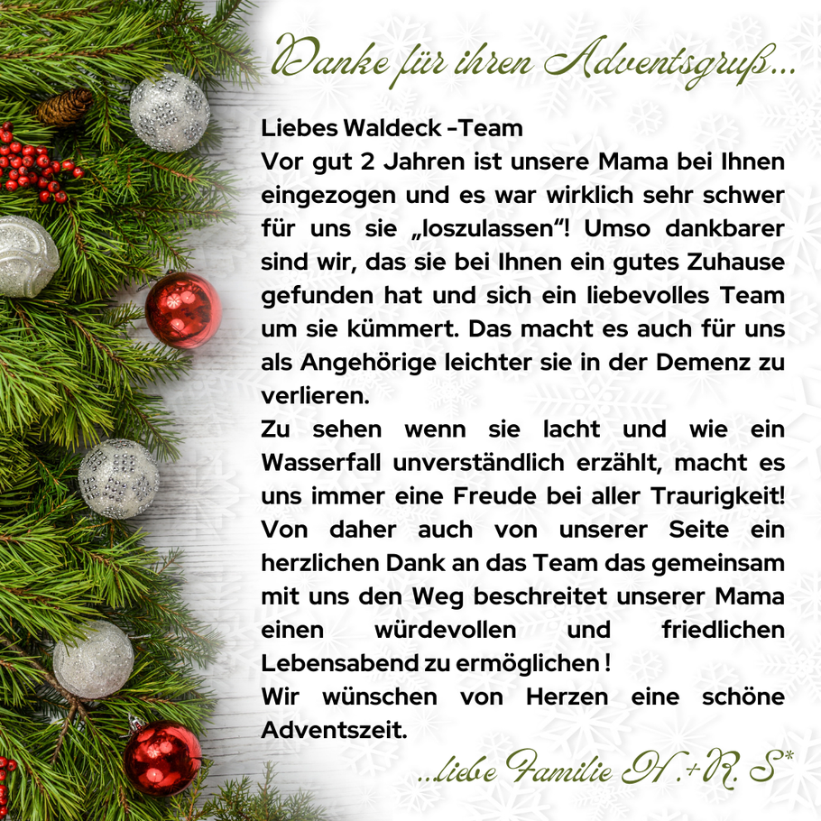 Textkopie aus einem Advenstgruß, den wir per MAIL im Dezember 2025 erhalten haben.